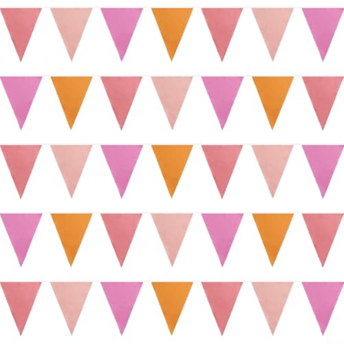 Oudain 5,2 m vimpel banderollflaggor, 2 st barnkammargirlang triangel flaggväv flagga babybanderoll för barnkammare dekor baby födelsedag boho bröllop shower fest evenemang, varje 2,6 m (retrofärg)