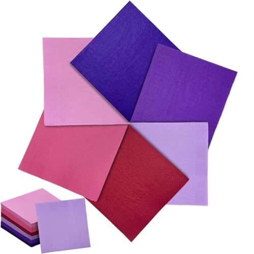 Gcardist 120 stycken rosa lila cocktailservetter i 6 färger, 12,7 x 12,7 cm engångsservetter av papper för cocktail, middag, födelsedagsfest dessert vin pappersservetter (12,7 x 12,7 cm)