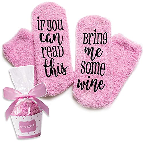 Livole Vin strumpor gåvor set If You Can Read This Bring Me Some Wine, cupcake presentförpackning, roliga varma bomullsstrumpor, romantisk födelsedagspresent för syster fru kvinnor värdinna inflyttning vinälskare, Rosa, one size