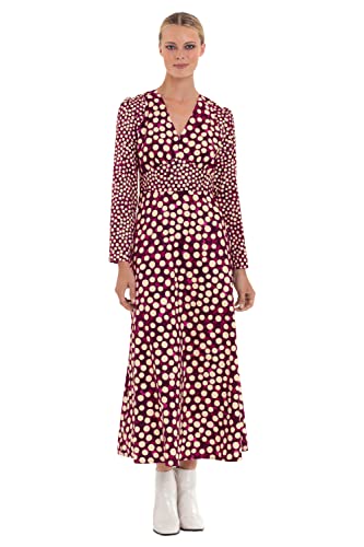 Donna Morgan Dam långärmad V-ringad midiklänning, vin/antikrosa, 12, Vin/Antik Rosa, 38 SE