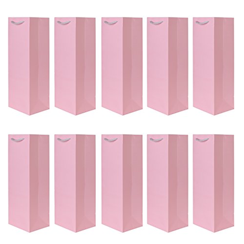 10-pack presentpåsar för flaskor rosa för vin, mousserande vin och champagne 36x12x10 cm