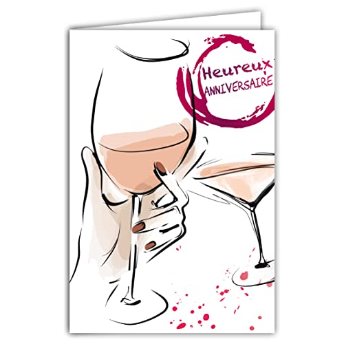 AFIE Grattis på födelsedagskort - chic dam trendigt rosa vin cocktail aptitretare bar provsmakning firande dricka ett glas kink afterwork - kuvert ingår - tillverkad i Frankrike 65-1352