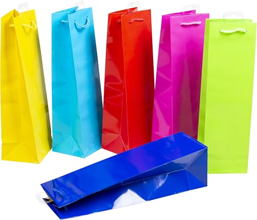 HEKU Färgglada högglans flaskfickor i enfärgad design, 12 stycken I 6 färger (gul, turkos, röd, rosa, ljusgrön, mörkblå), 33 x 10 x 9 cm I perfekt för vin och sprit I återanvändbar