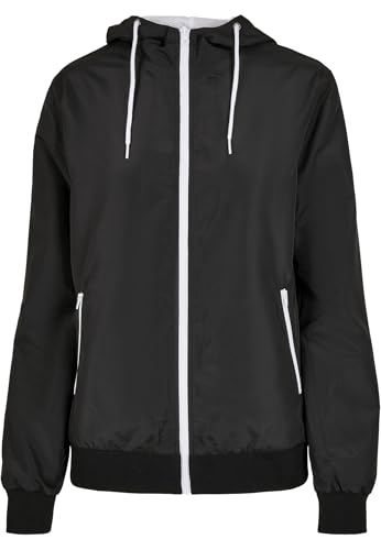 Build Your Brand Damjacka, vindjacka, basic vindjacka för kvinnor med huva, finns i 3 färger, storlekar XS – 5XL, svart/vit, S