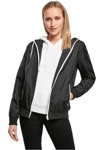Build Your Brand Damjacka, vindjacka, basic vindjacka för kvinnor med huva, finns i 3 färger, storlekar XS – 5XL, svart/vit, M