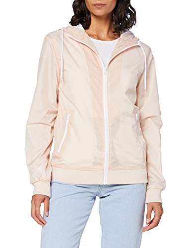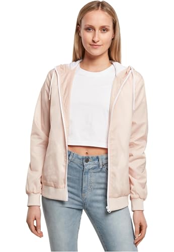 Build Your Brand Damjacka, vindjacka, basic vindjacka för kvinnor med huva, finns i 3 färger, storlekar XS – 5XL, Ljusrosa/vit, XL