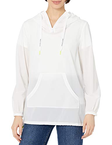 Armani Exchange Ikonprojekt för kvinnor, logotyplapp, avtagbar huva vindjacka, Optisk vit, XS