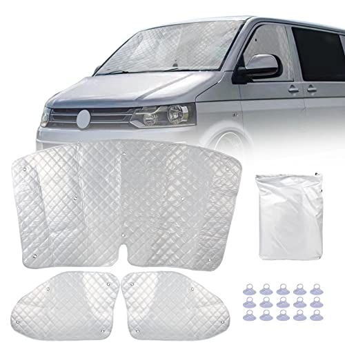 MaxEarn Solskydd bil framruta för VW T5 T6, 3 st lyxiga termomattan hytt, UV-skydd bil vindruta solskydd för V-W husbil skåpbil VW T5 T6