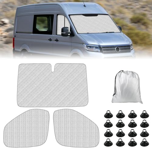 Solskydd bil vindruta ersättning för VW Crafter/Grand California 2006–2017, 3-delad teknik termomat, aluminiumfolie vikbar solskydd, vindruteskydd