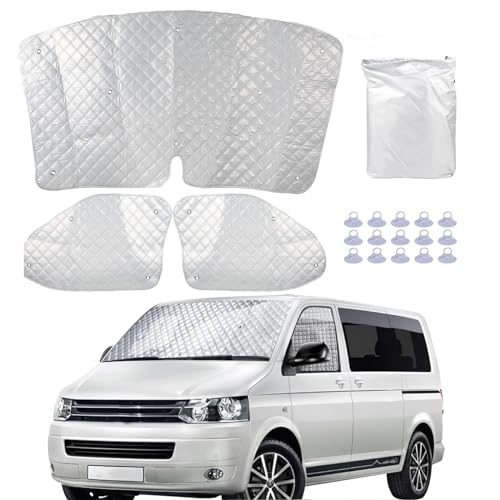 ZATOOTO Solskydd bil vindruta lämplig för VW T5 T6, 3 delar bil solskydd vindruteskydd, vindruta interiör mörkare, UV-skydd, hopfällbar
