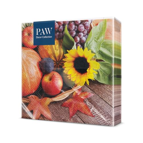 PAW – servetter 3-lager (33 x 33 cm) I 20 stycken I perfekt för födelsedagar, fester, möten I höst bordsdekoration I färgglada pappersservetter – pumpa vindruvor äpple solros I höst treasures