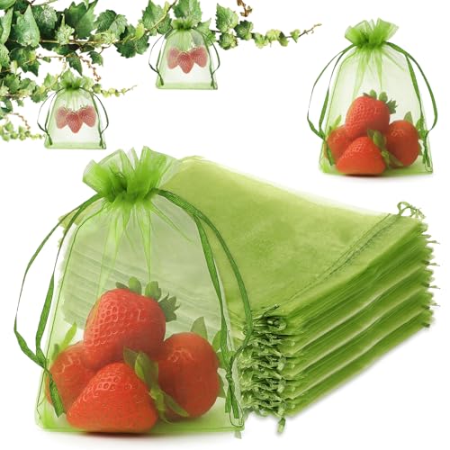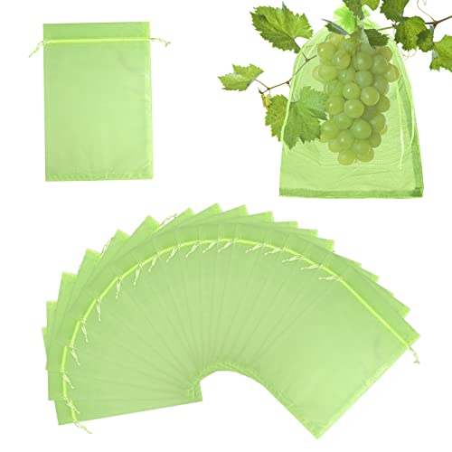 Leeyunbee 100 stycken druvskyddspåsar 20 x 30 cm, fruktskyddspåsar, vindruvor, skyddspåse med dragband, organzapåse, trädgård, nätpåse för att skydda mot fåglar, getingar, fruktflugor, insekter (grön)
