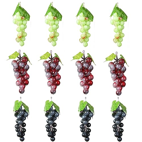 Molyorch 12 stycken vindruvor, konstgjorda vindruvor, vindruvor, dekoration, för vindekoration, konstgjorda fruktstöd, trädgårdskontor (grön och fuchsia och svart)