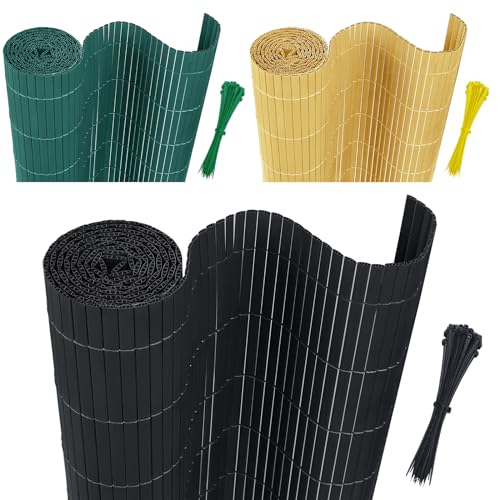 AufuN Insynsskyddsmatta, PVC, insynsskydd, 180 x 1 000 cm, med buntband, standard, insynsskydd, bambu, vindskydd för trädgård, balkong och terrass, intern W-struktur, förstärkta lameller (bambu)