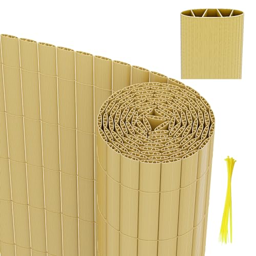 Vigevee PVC insynsskydd, insynsskyddsstaket, 120 x 500 cm, trippel förstärkning inomhus, balkong, insynsskydd med buntband, balkongbeklädnad vindskydd för balkong, trädgård, bambu