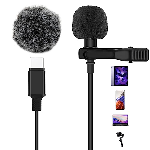 AGPTEK Type-C Lavalier mikrofon, 2 m minidirectional kondensator för Android och surfplattor, mikrofon med vindskydd för streaming, podcast, kompatibel alla enheter med typ C-anslutning, AC510GBC