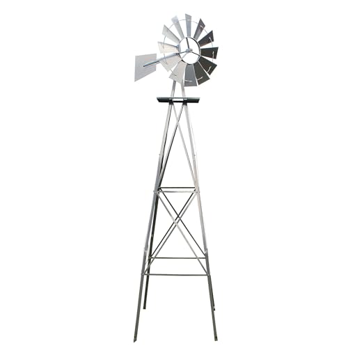 Wiltec Amerikansk väderkvarn med 245 cm höjd, silverfärgat vindhjul, vindsnurra i US-design, trädgårdsdekoration med kullagrat hjul