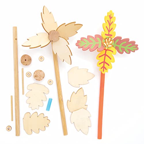 Baker Ross FE648 Höst trä väderkvarn kit – 4-pack, väderkvarnar för trädgård, gör din egen vindsnurra, trähantverk för barn att tillverka, dekorera och visa upp