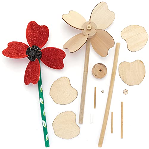 Baker Ross FE844 Vallmo trä väderkvarn kit – 4-pack, väderkvarnar för trädgård, gör din egen vindsnurra, trähantverk för barn att tillverka, dekorera och visa upp