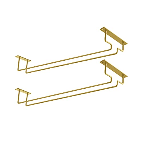 MATILODI 2-pack 40 cm lång enkelskena metall vinglasställ – under skåp, stativglas, förvaringshållare för vinglas med skruvar – vinglashängare för husbil, skåp, köksbar (guld, 2)