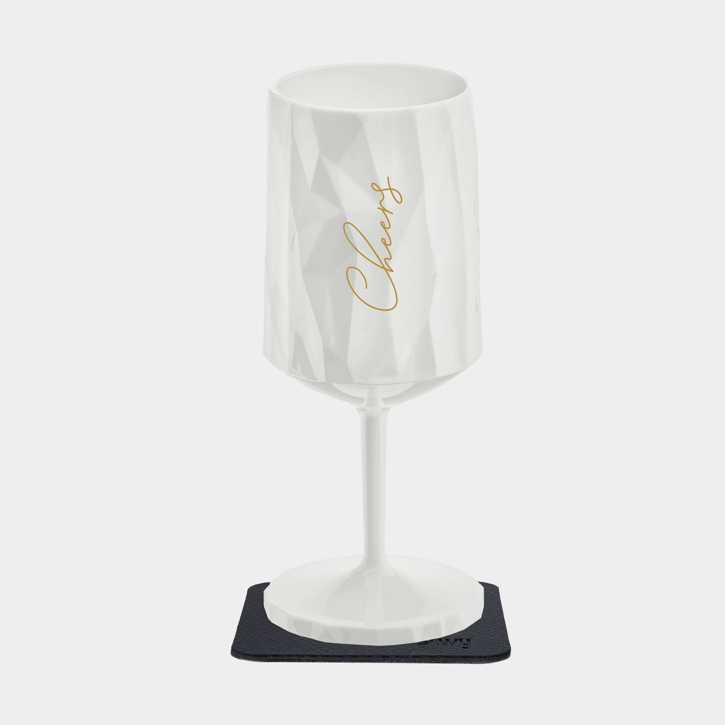 Silwy Magnetiskt vinglas i plast Magnetic Plastic Glass Wine Cheers, vit, 30 cl + magnetiskt glasunderlägg