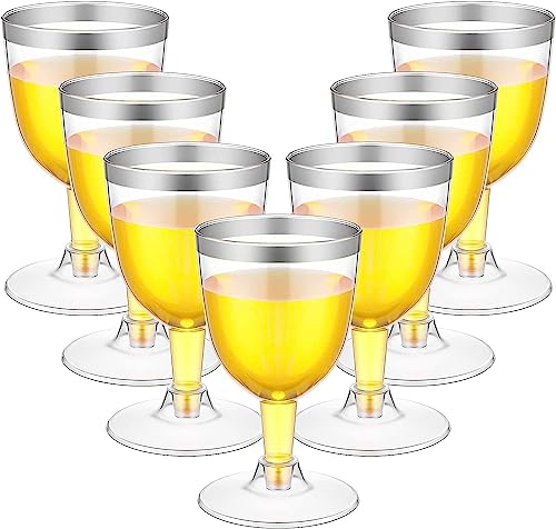 LATERN 50 st silverfärgade vinglas, 170 ml vinprovningsglas i plast, återanvändbara, stammade party vinglas för drycker, whisky, champagne, öl, cocktail, martini (13,5 x 6,5 cm)