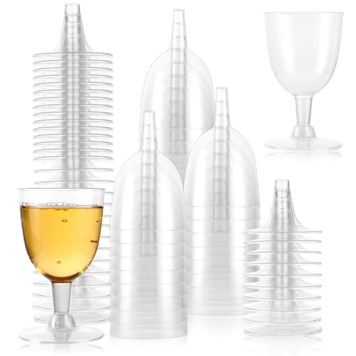 KAHEIGN 50 st vinglas i plast, 170 ml klara vinprovningsglas, återanvändbara, stammade fest vinglas desserttallrikar för whisky, champagneöl, pudding, mousse, fest (12 x 6,5 cm)