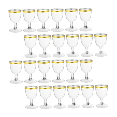 Muzrunq Vinglas i plast, 24 st klara med guldkant, återanvändbara, 160 ml kapacitet, perfekt för bröllop, födelsedagar, fester