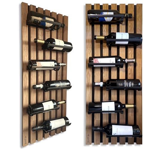 FLEXISTYLE Vinhyllor av trä flaskställ svart vägg för vägg väggmontering kök metall trä 40 cm breda stora (98 x 40 6 flaskor)