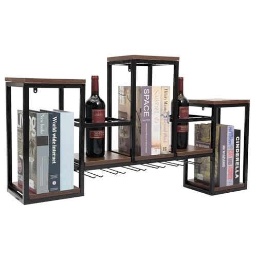 XUEMANSHOP Vinställ för väggmontering, väggmonterade vinhyllor med stämpware hängare flera lager lagring för restauranger, barer, röda hotell, lounger 106 cm x 20 cm x 55 cm