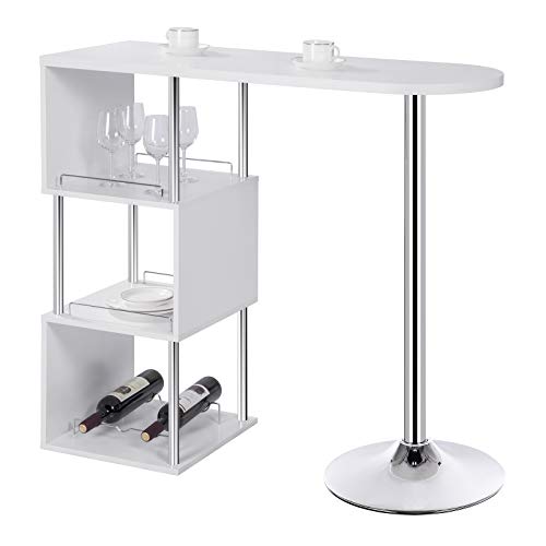 WOLTU barbord BT22ws barbord bistrobord bardiskbord, med 3 hyllor, med vinhyllor, metall, MDF, vit, 113x40x105cm (BxDxH)