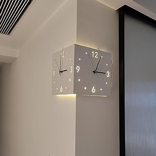 LILIXINGSH Väggklockor vardagsrum modern, dubbelsidig hörnväggklocka, digital hörnväggklocka, tyst väggklocka med enkel vinkel (färg: vit)