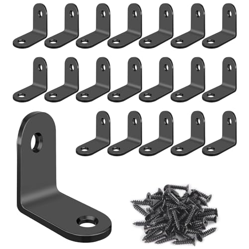 HFDONGL 20 stycken vinkelkontakter metallvinkel 90 grader 30 x 30 mm rostfritt stål vinkel med skruv vinkel litet vinkeljärn för odling möbler bord stol bokhylla skåp väggmontering (svart)