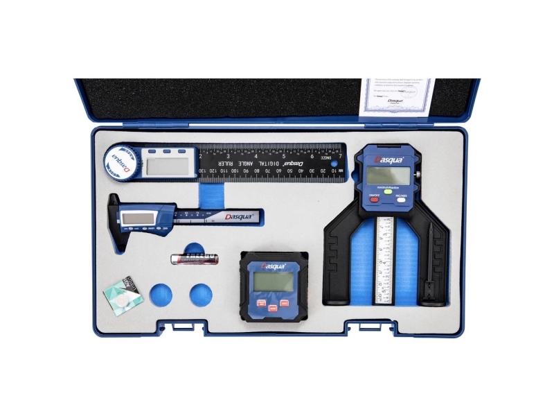 Dasqua 8300-0095 Mätverktygssats 4 Delar - Nivelleringslåda, Djupmätare, Skjutmått Av Glasfiber Och Vinkellinjal
