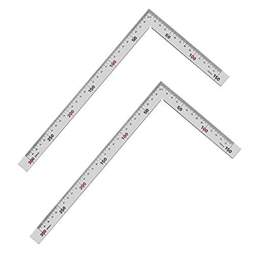 2 stycken 90 graders linjal rostfritt stål L-formad vinkellinjal metall fyrkantig linjal rostfritt stål L linjal dubbelsidig skala för snickare, ingenjörer, hantverkare, mässor, byggeld (300 mm x 150