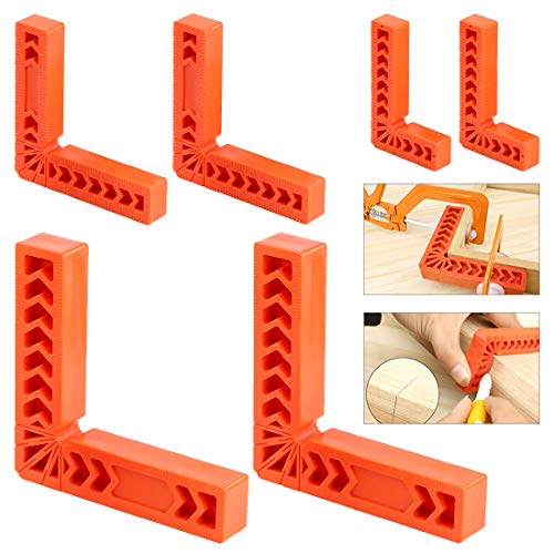 Glarks 6 st 7,6 cm 10 cm 15 cm 90 graders positioneringsrutor, rätvinkliga hörnklämmor för träbearbetning, bildramar, lådor, skåp eller lådor, L-typ rät vinkellinjal, snickarverktyg