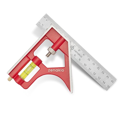 Zenakio kombinationsvinkel 15 cm – exakt mätning och markering – vinkellinjal i rostfritt stål – perfekt för trä- och metallarbete – Zenakio professionell kombivinkel