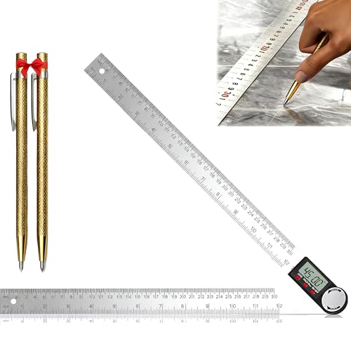 Vinkellinjal för snickare 180 mm, kombinationsvinkel 300 mm, multifunktionell triangellinjal för snickare, snickarpenna med 12 ersättningsminor för träbearbetningsverktyg