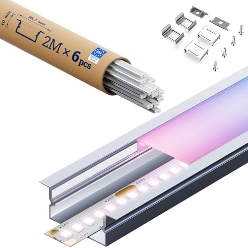 6 x 2 m (40 m) aluminiumprofil för LED-remsor matt användning för Maxskärm L2000 x 19,7 x 10 mm LED SP23 aluminium vinkelprofil (6)