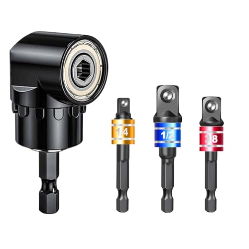 105° vinkelskruvdragare, adapter, 1/4 tum borr, sexkantsskaft, 3 delar, hylsadapter (1/4 tum, 1/2 tum, 3/8 tum) sexkantig hylsnyckel, skruvnyckel, nöt, set, adapter