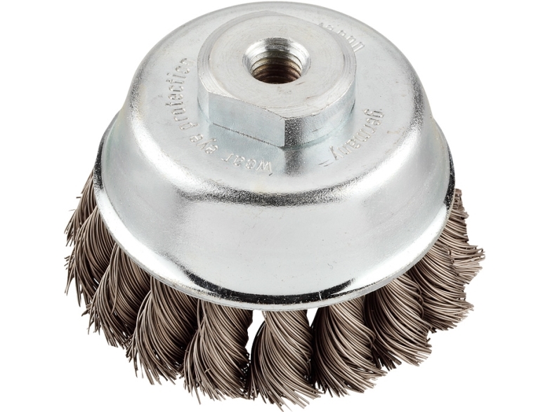 Wolfcraft , flettet keglestålbørste til vinkelsliber Ø100 mm M14 gevind