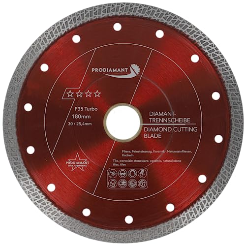 PRODIAMANT Diamantkapskiva F35 Turbo Premium 180 mm – kakel och porslin – extra tunn 2,0 mm – förstärkt fläns – Ø 30/25,4 mm – rena, rivfria snitt för vinkelslip