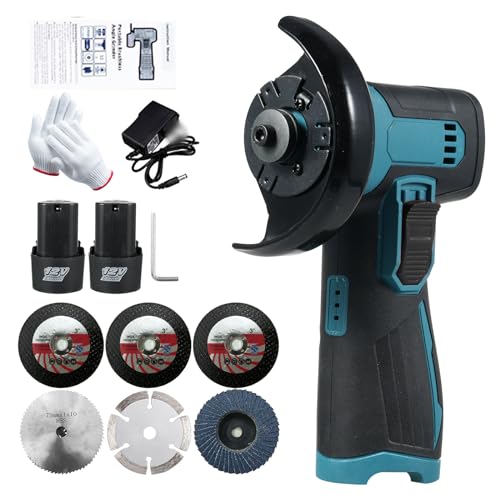 Vinkelslip 12 V, 3"/76 mm skiva, lätt vinkelslip 2 batterier 1 300 mAh och laddare, ergonomisk knappposition minskar borstens trötthet på händerna, 6 skärskivor