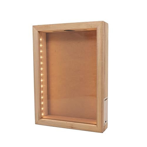 hvfun 20 cm x 38 cm rustik skugglåda i naturligt trä med lampor, LED-ljus display för vinkorkar, biljetter och kreativa utställningar, konstnärliga presentationer