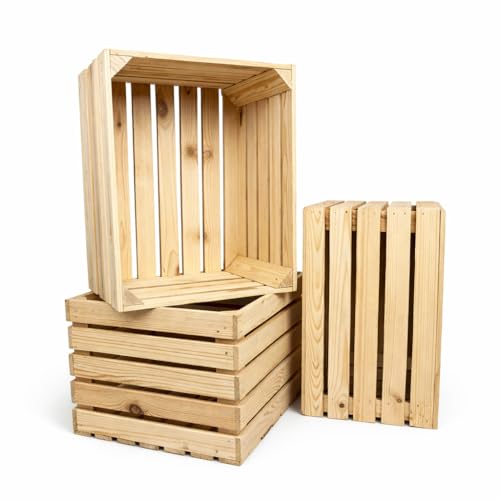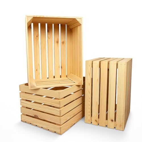 WOOD Trälåda stor – naturlåda – dekorativ vinlåda – 50 x 40 x 30 cm – fruktlåda – 3 stycken naturlig trälåda – förvaringslåda av trä