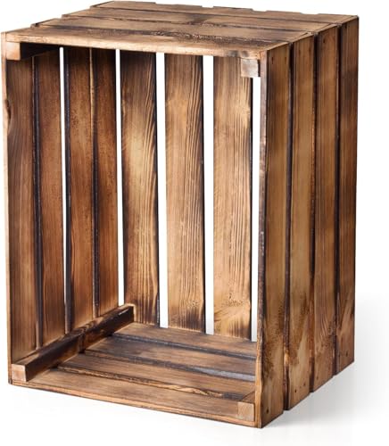 PINEEA Trälåda Stor - Fruktlåda Trä - Dekor Vinlåda - 1 Styck Bränd Vintage Trälåda 50x40x30