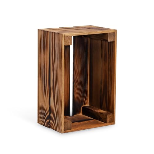PINEEA Trälåda liten – vinlådor trä – dekoration trälåda – vinlåda trälåda – fruktlåda vintage – flammad låda 30 x 20 x 15