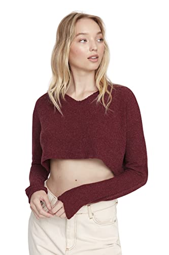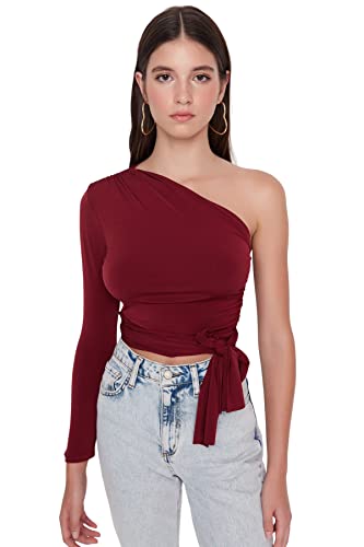 Trendyol Dam myskläder anpassad standard rund hals stickad blus skjorta, vinröd, XS, Vinröd, XS