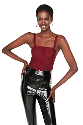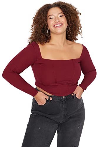 Trendyol Kvinnor plusstorlek monterad bas fyrkantig krage stickad plus storlek blus, vinröd, 5XL, Vinröd, 5XL