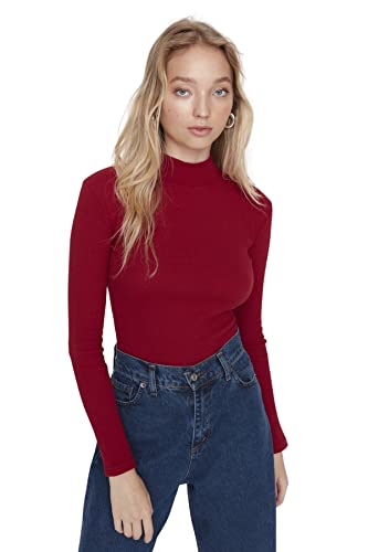 Trendyol kvinnor anpassad kroppstrut hög hals stickad blus, Vinröd, L